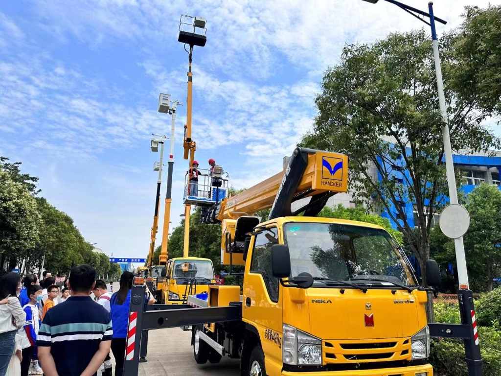 活動伊始,職工與子女在大樓前合影留念并宣讀安全防范注意事項,持續(xù)樹牢安全紅線意識和安全理念。小朋友們在隊列引導(dǎo)下有序參觀公司產(chǎn)品,在高空作業(yè)車前不禁駐足,爭先恐后嘗試挑戰(zhàn)。